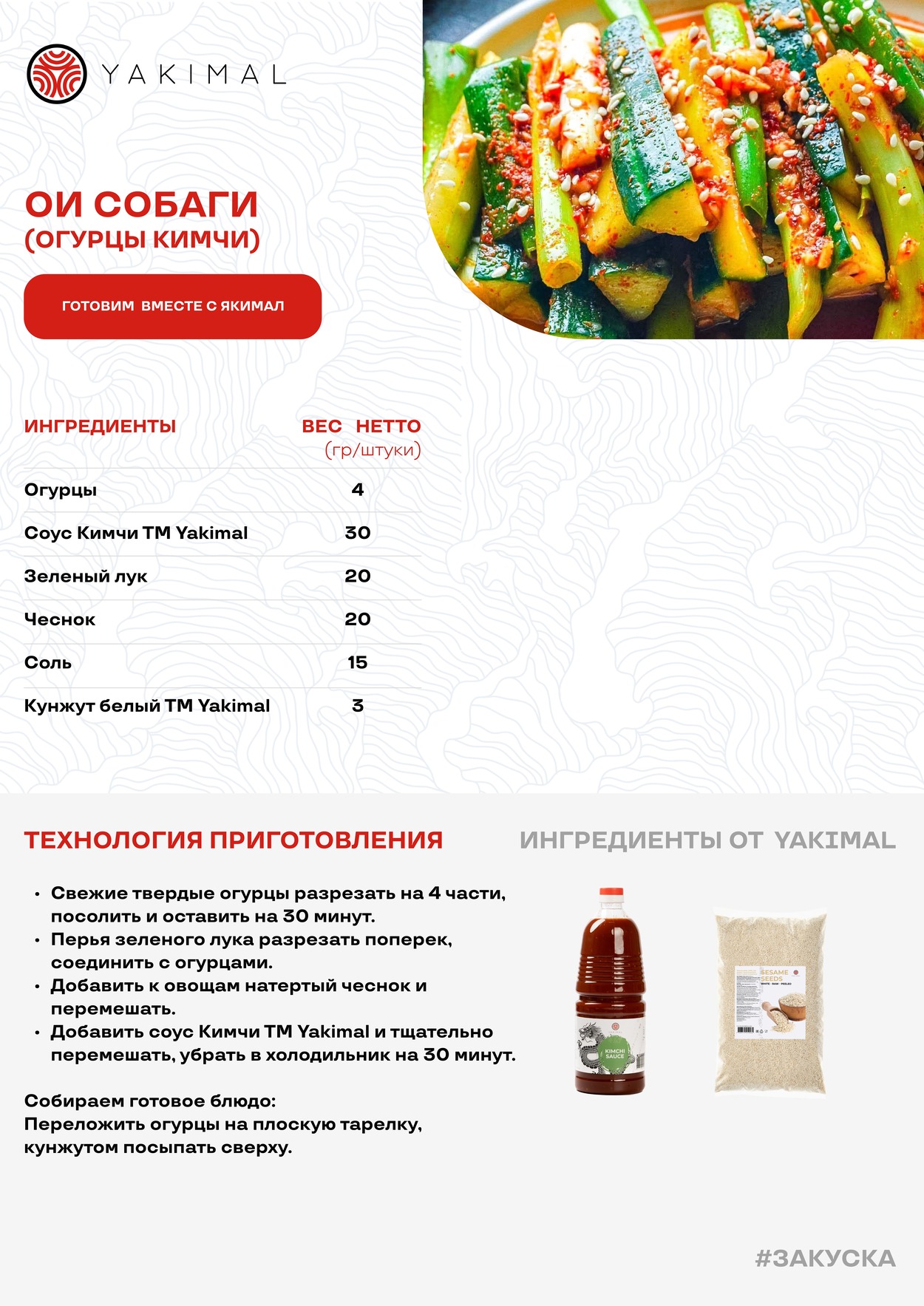 - Добавить соус Кимчи ТМ Yakimal и тщательно перемешать, убрать в холодильник на 30 минут.