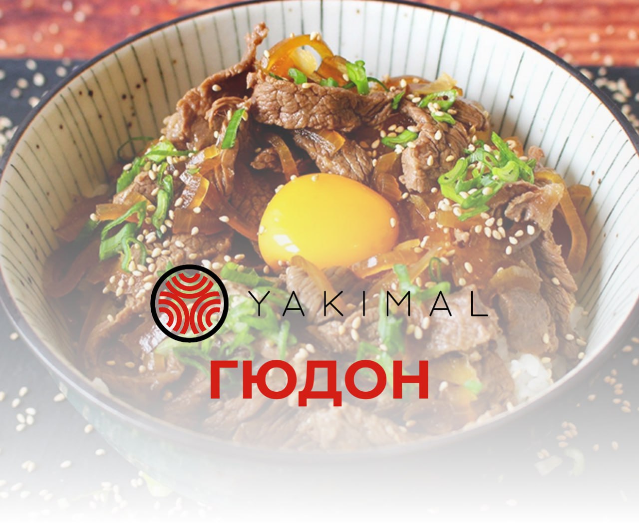 В миску выложить теплый рис, сверху положить мясо и полить бульоном. Аккуратно выложить сырой или маринованный желток, украсить блюдо зеленым луком и кунжутом.