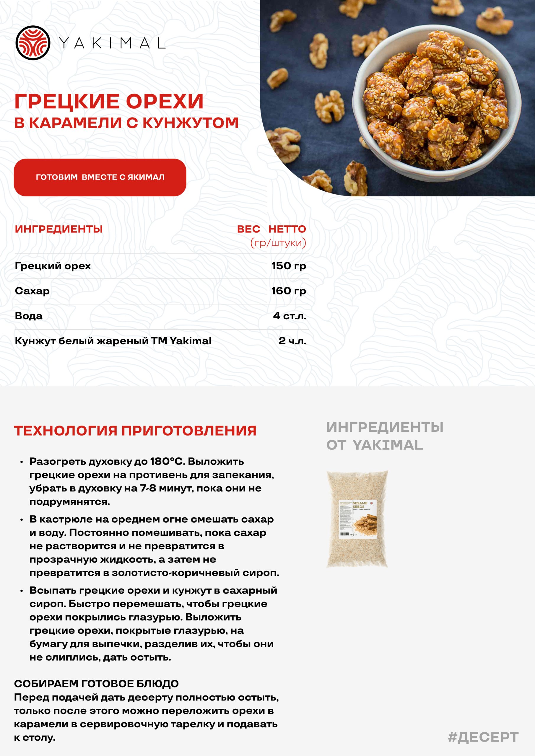 - Всыпать грецкие орехи и кунжут в сахарный сироп. Быстро перемешать, чтобы грецкие орехи покрылись глазурью. Выложить грецкие орехи, покрытые глазурью, на бумагу для выпечки, разделив их, чтобы они не слиплись, дать остыть.
