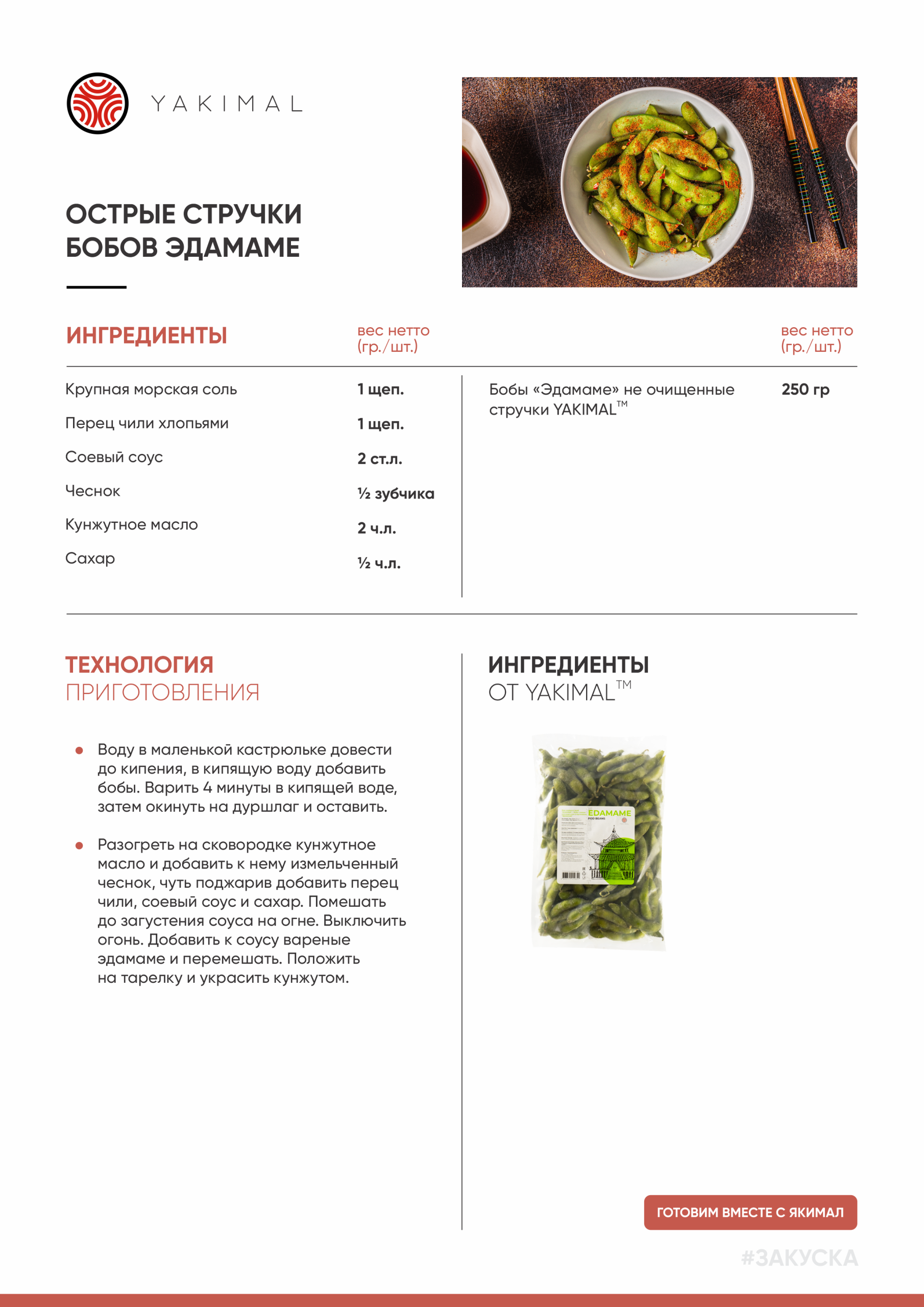| Бобы "Эдамаме" не очищенные стручки ТМ Yakimal | 250 гр |